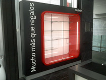 despues de realizar un prototipo, trabajando junto al equipo de diseño de Plan Project, hemos conseguido fabricar una vitrina expositora que se instalará en la recepcion de diferentes hoteles de la cadena hotelera. La vitrina expositora consiste en una volumen cúbico con la aristas romas, que sale de un mueble grafito, todo ello iluminado con unas lineas leds.